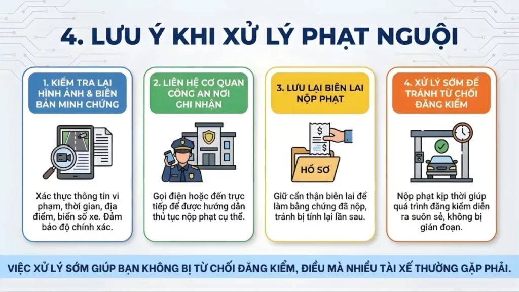 • Nếu phát hiện lỗi không đúng, chủ xe cần liên hệ cơ quan chức năng để khiếu nại kịp thời.